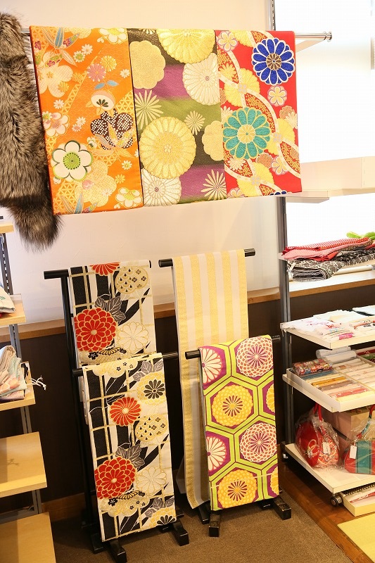 帯コーナーには少し変わった色のカラフルな帯をかけてあります!